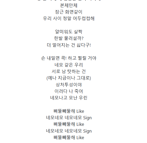 참고로 타이틀곡 네모네모에서도 "예나 지금이나"라는 가사가 사용되었습니다.