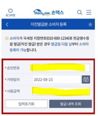 현금영수증 발급을 깜빡하거나 사람이 많아 발급받지 못한 경우라도, 자진발급을 통해 나중에 등록이 가능합니다. 단, 이때는 거래 영수증(거래일시, 금액, 승인번호 포함)을 반드시 보관해야 합니다.