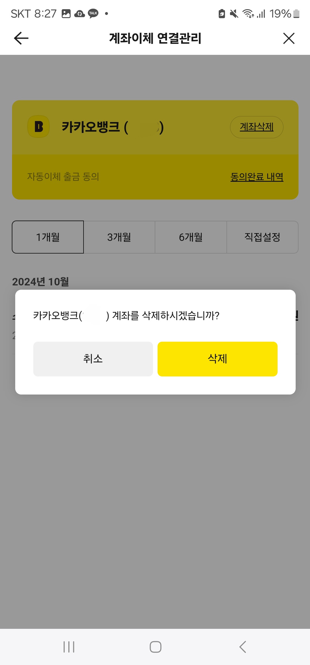 만약 연결하려는 계좌가 이미 다른 카카오 계정에 등록되어 있다면, 해당 계좌는 사용할 수 없습니다. 이 경우, 기존 계정에서 해당 계좌를 삭제한 후에 연결을 시도해야 합니다.